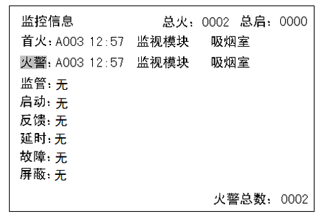 應(yīng)顯示對應(yīng)的火警信息。當(dāng)無報火信息時,火警的右側(cè)無信息顯示。